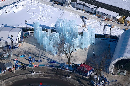 « Pierre Lahoud a choisi le point de vue des nuages pour exprimer son amour de l’architecture et des paysages du Québec et de l’ailleurs. »