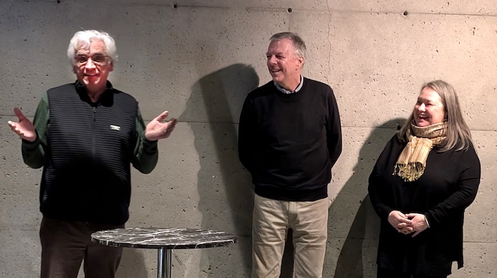 Pierre Lahoud est entouré de Stéphane Lahoud (son cousin) et de Evelyne Lafleur Guy. Photo : ©Marc Cochrane